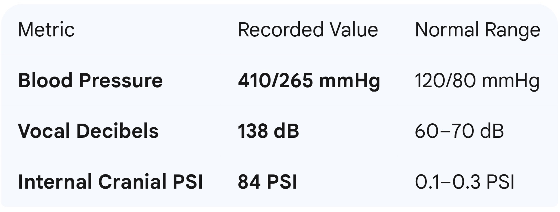 Cageside medical technicians confirmed that Buffer’s internal vitals had reached levels previously thought incompatible with human life.